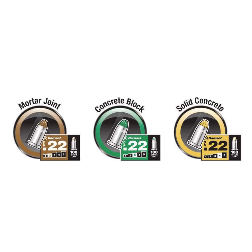 Ramset powder loads provide quality performance and the power to penetrate hollow block and concrete. Use Ramset 0.22 Caliber Yellow Single-Shot Powder Loads (25-Pack) with the Ramset 721, MasterShot, TriggerShot and HammerShot tools. Ramset assures consistent, optimum quality in every load.