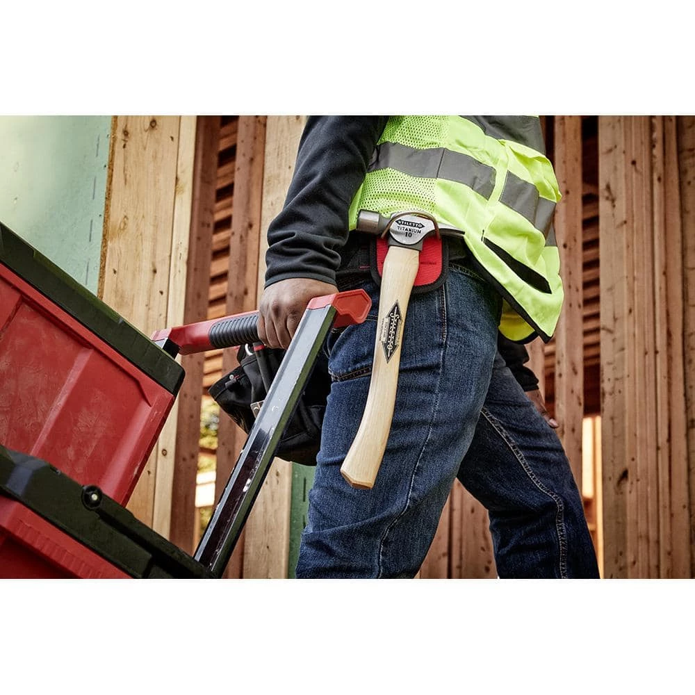 The Stiletto FH10C is a 10 Oz. Titanium Smooth Face Hammer with 14 1/2 in. Curved Hickory Handle. The Hammer has a straight claw design and Stiletto’s signature Magnetic Nail Starter. The FH10C has the comparable striking force of 21 Oz Steel hammer and is recommended for residential framing and remodeling. Stiletto Tool Company has been synonymous with high quality hand tools dating back to 1849. With its long history and strong reputation, the brand has evolved into the modern day standard for innovative, lightweight, ergonomic, productive, and professional tools. We set the standard with our line of premium titanium hand tools that span numerous trades such as framing, remodeling, finish work, siding, demolition, concrete, and drywall. Titanium is 45% lighter weight while providing the same striking force and strength as steel. Titanium tools also produce 10 times less recoil shock which helps reduce carpal tunnel syndrome. The combination of these features means less down time, more productivity, and most importantly less pain while working.