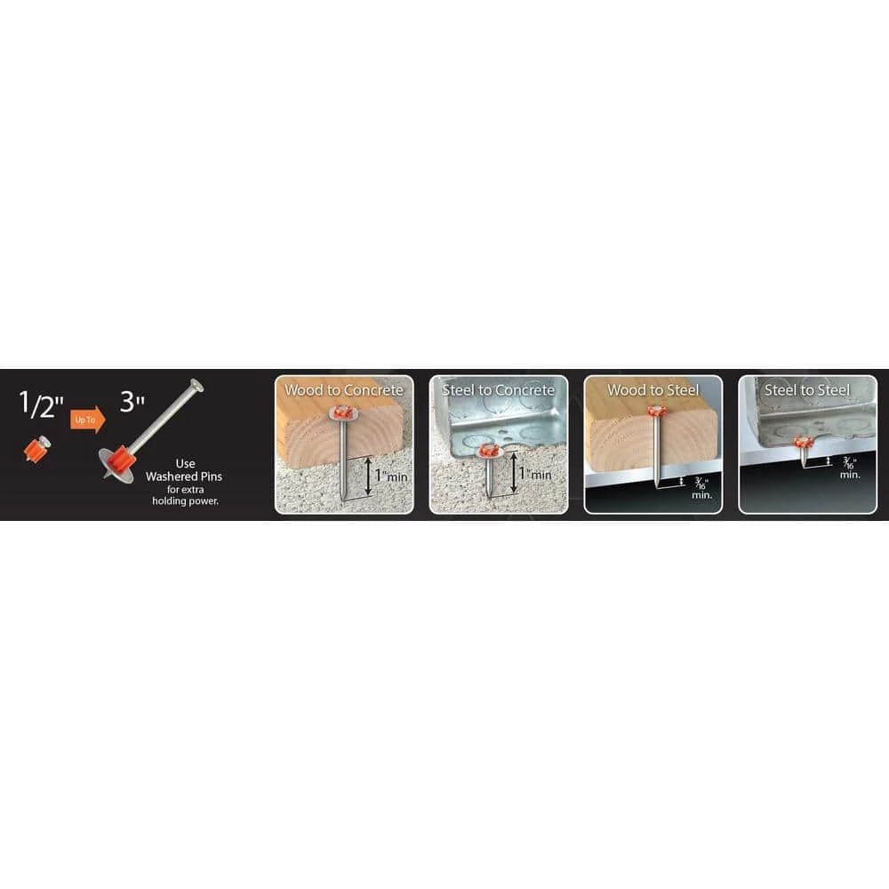 The Ramset 3/4 in. Drive Pins (100-Pack) designed for fastening applications in concrete and steel. They are specifically fabricated for toughness and durability and are able to penetrate dense concrete and structural quality steel. Ramset assures consistent, optimum quality in every fastener.