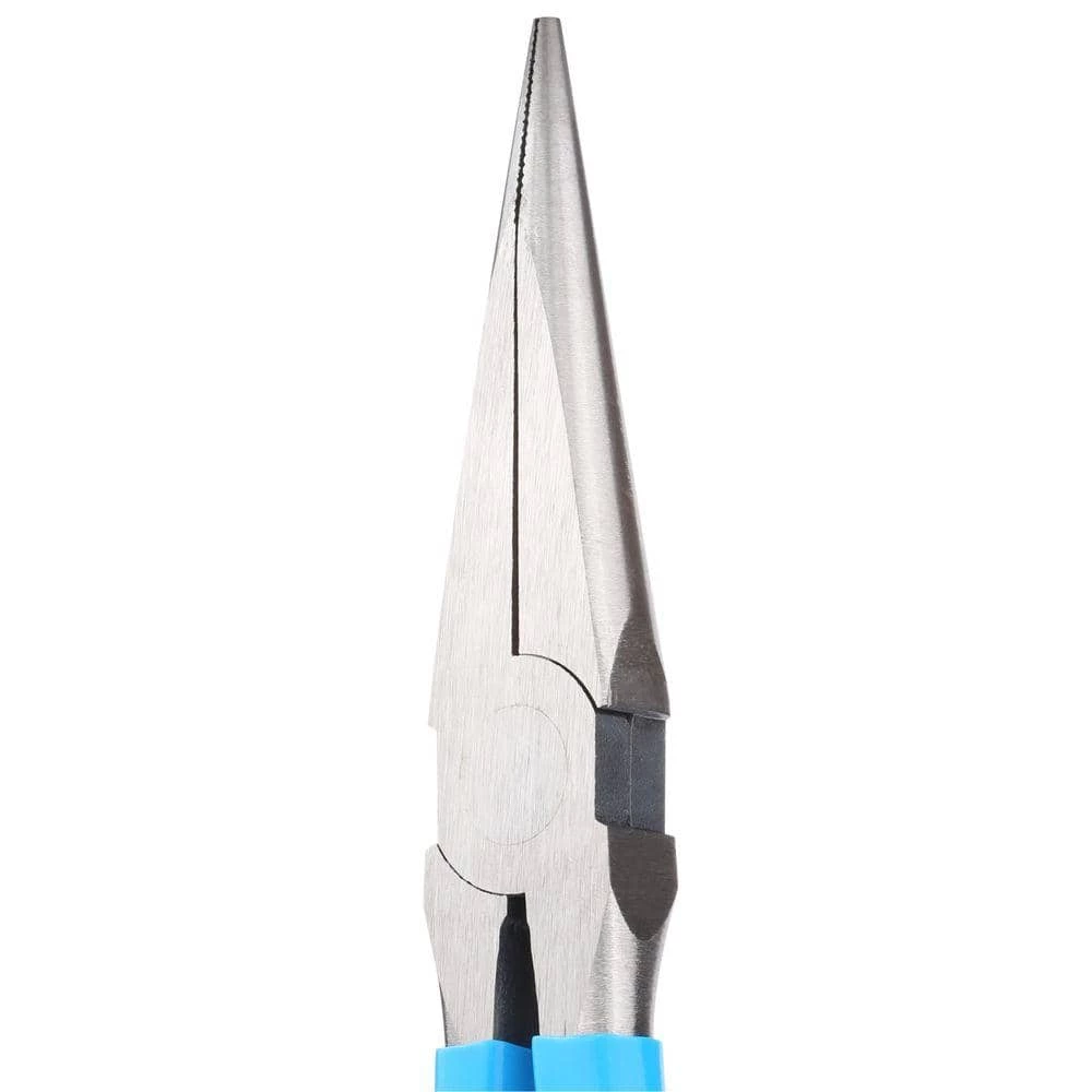 - Long nose pliers have cross hatching on the jaws made of polished high-carbon drop-forged steel