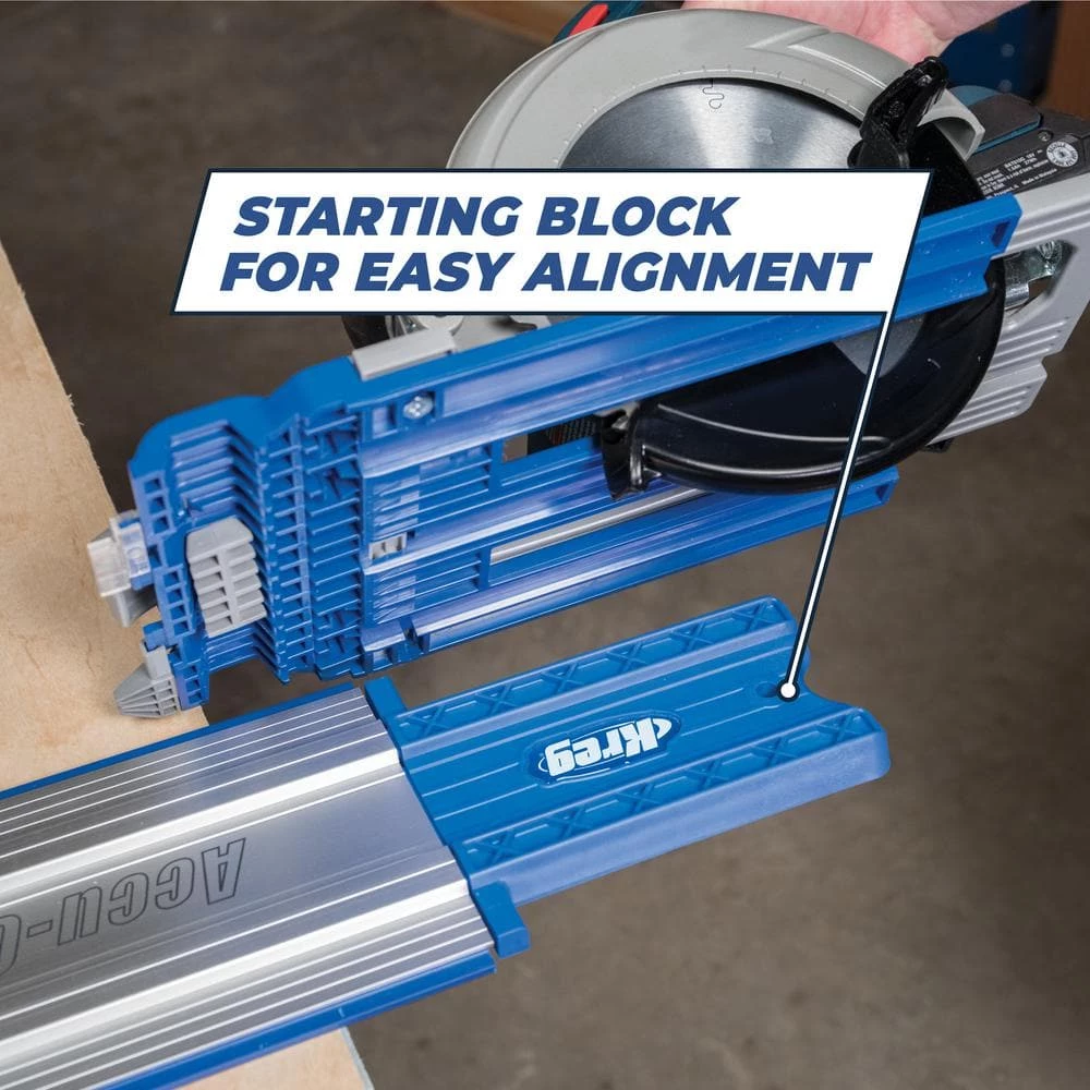 Start projects right by making straight, accurate, splinter-free cuts with your circular saw and the accu-cut circular saw guide track system. It rips, crosscuts and makes angled cuts up to 48 in. long in plywood, MDF and other large panels with super-simple setup, precise accuracy and amazing control. The accu-cut guides your circular saw along an aluminum track that keeps the saw moving in a straight line easily. The accu-cut design makes it simple to set up by just aligning the track with your cut line. No clamps are required to hold the track in place thanks to dual guide strips. They feature an anti-slip coating to prevent slipping and an anti-chip feature to prevent splintered cuts. Plus, the track makes it easy to make straight cuts on sheets that don’t have a straight, flat edge. Circular saws don’t have effective guides that keep them moving straight along a cut line. Plus, it can be difficult to see the blades cutting path. Together, these things make it challenging to keep a saw on your desired cut. Circular saws also often cause splintering of face veneers. The accu-cut solves these problems. The accu-cut is portable, too, so you can take your saw to the work-piece and cut with precision, rather than having to handle heavy sheets on a table saw. The accu-cut is easy and intuitive for a novice to use, but robust enough for professionals.