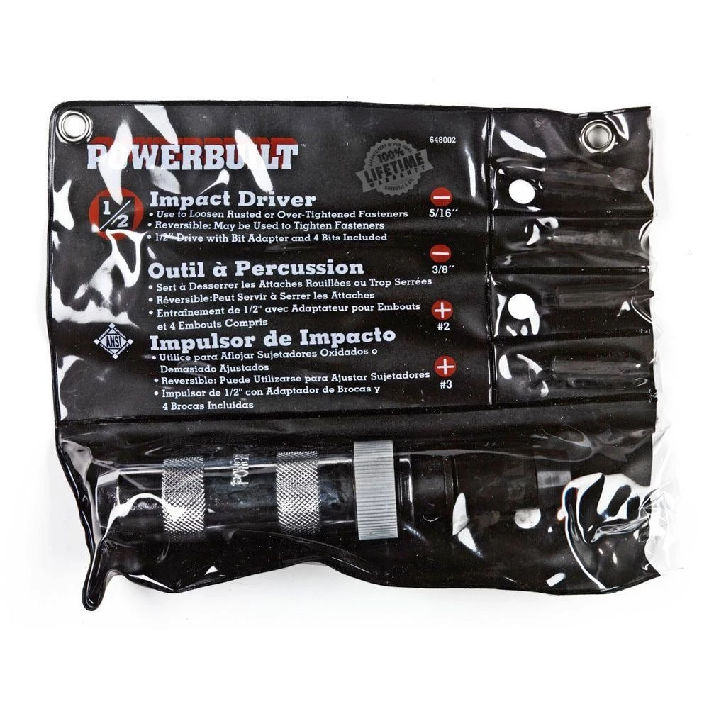 For some tools, there is no substitute. An impact screwdriver is one of those tools. It’s the only tool that will reliably loosen rusted, frozen and rounded screws. Simply load the correct size slotted or Philips bit, set the driver on the screw and strike the driver handle with a hammer. Kits includes 4 driver bits and a storage pouch.