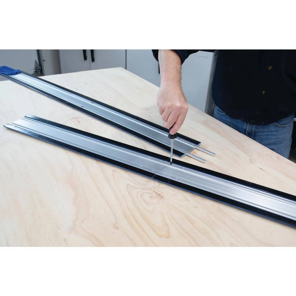 Get more from your Accu-Cut with an Accu-Cut Expansion Pack with extended-length track guide. Double the cutting capacity of your Accu-Cut with the Accu-Cut Expansion Pack. It connects easily to your Accu-Cut to deliver the same straight, accurate, splinter-free performance on cuts up to 100 in. long. Make the cuts you need at any length and angle on panels, plywood and MDF. The Accu-Cut Expansion Pack brings the same consistent, dependable performance to your projects that you expect from the Accu-Cut – but allows you to guide your circular saw along an even longer aluminum track for support through the entire cut. The anti-slip, anti-chip guide strips extend through all four track pieces to bring the same tearout protection and stability to your cuts, no matter the length. It’s easy to transform your Accu-Cut into a high-performance, 100 in. track guide with the Accu-Cut Expansion Pack. Simply connect the 2 guide tracks to your Accu-Cut whenever you need to make longer cuts. Take your saw and track to your workpiece to make any length cut – anywhere.