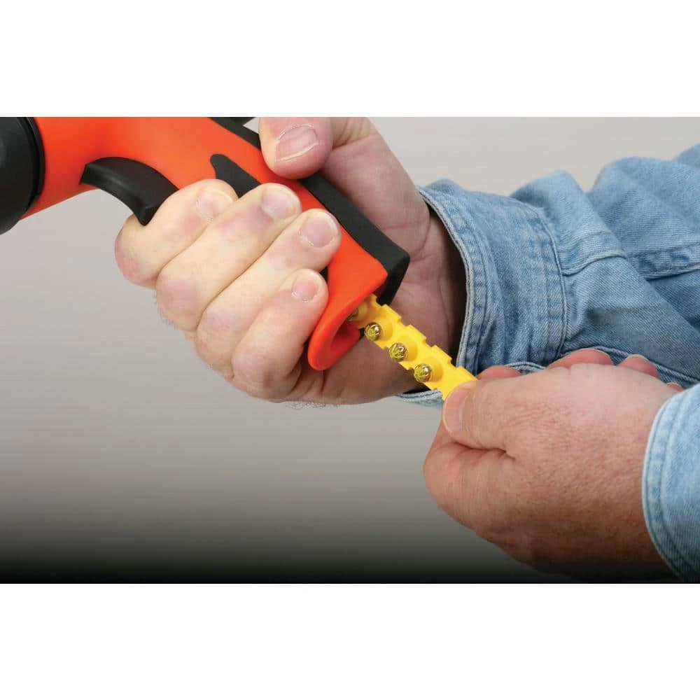 - Fires 10 shot strip loads, 1 strip of loads drives 10 pins (up to 3 in.)
