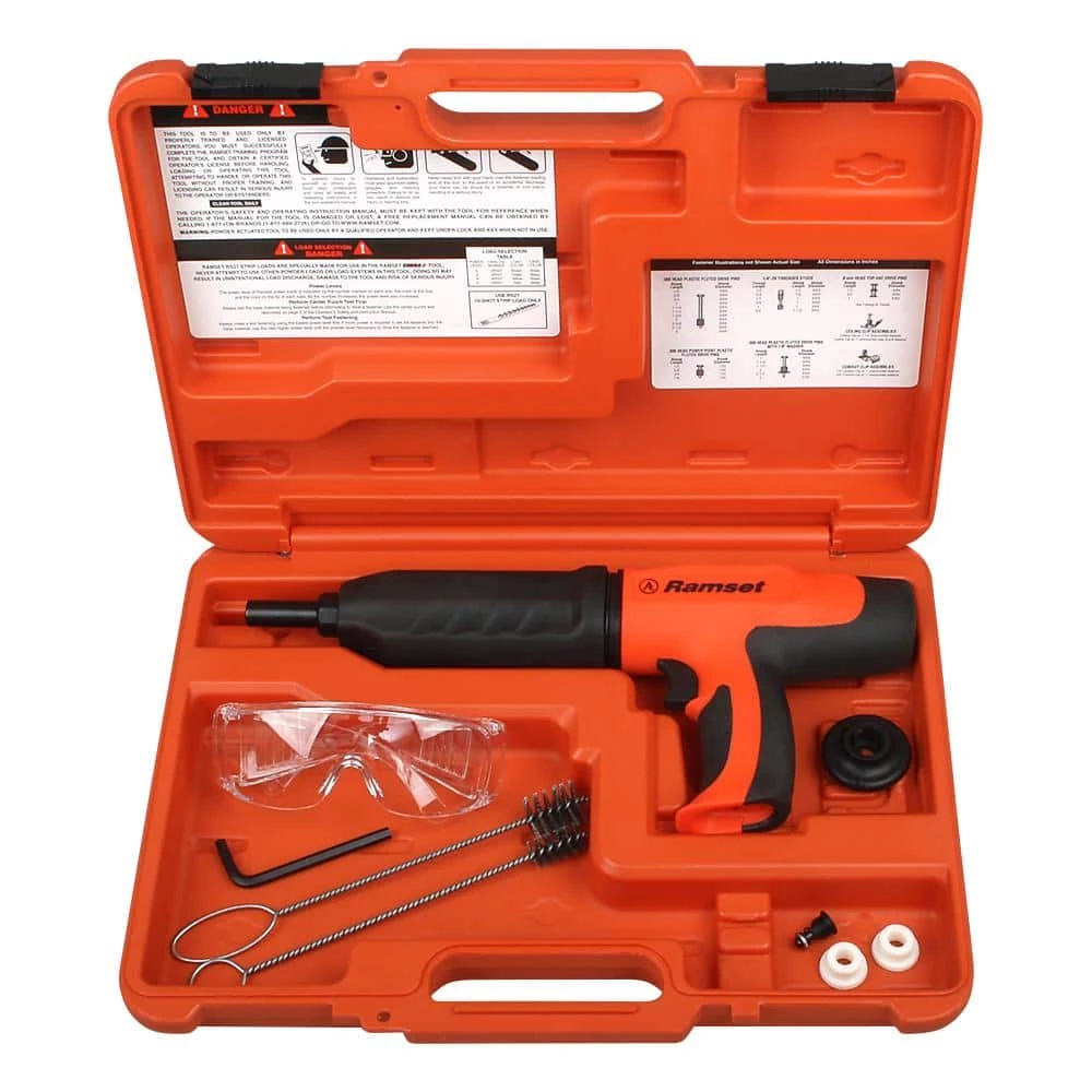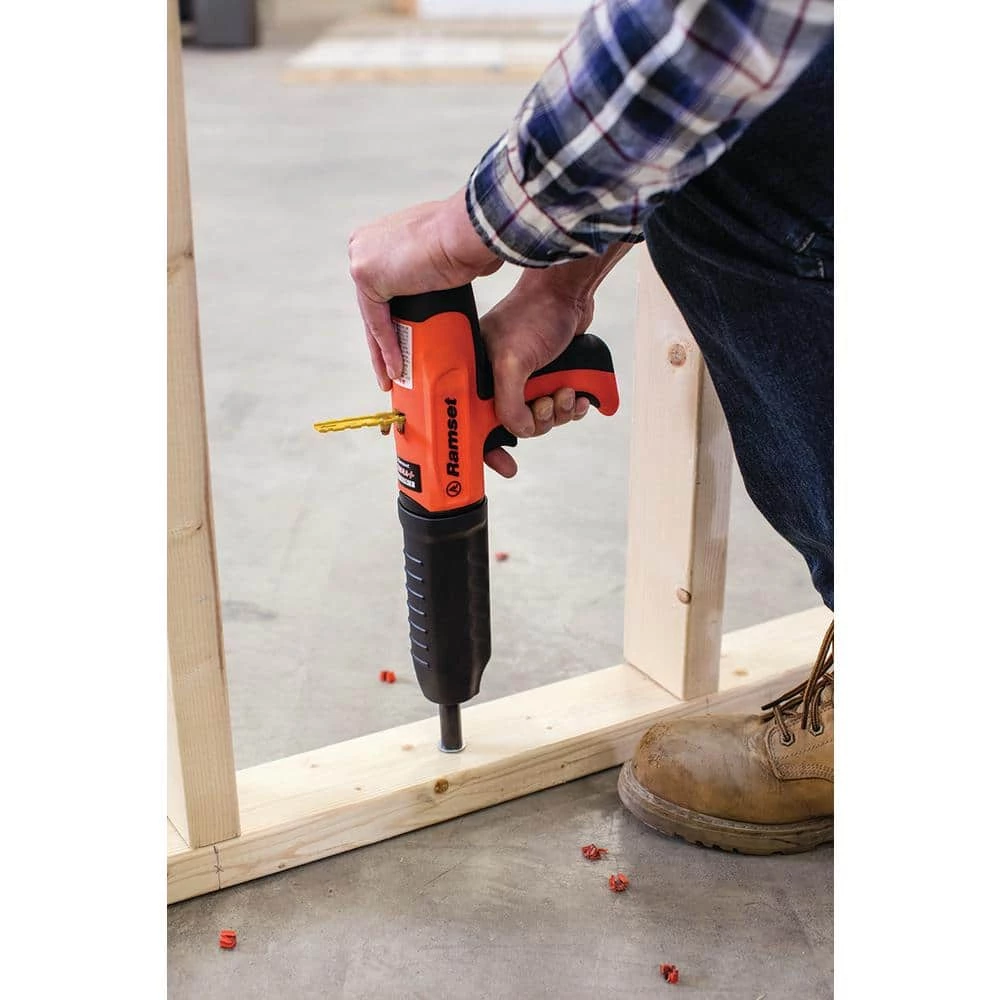 The Ramset Cobra+ 0.27 Caliber Semi-Automatic Powder-Actuated Tool can tackle professional remodeling projects, such as attaching wood to concrete or steel. It lets you set the load strength to match the job. The adjustable power level increases speed and efficiency and reduces power up to two levels. The silencer feature reduces actuation noise, and the ergonomic grip provides comfort for long jobs.