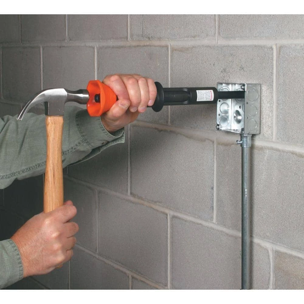 - Hammer actuated tool with a barrel design that allows for easy horizontal and overhead fastening, up to 2-1/2 in. drive pins
