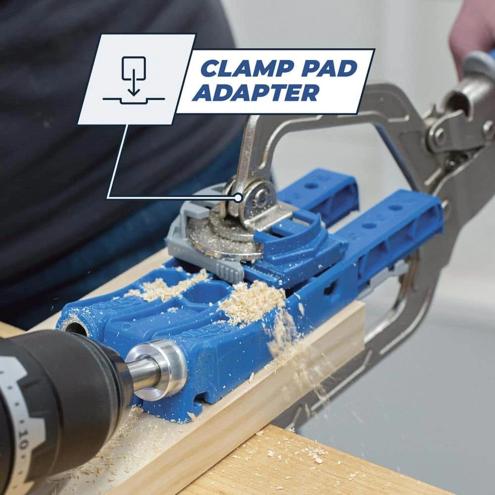 - Convenient variable pocket-hole spacing with twist-apart drill guides and removable spacers
